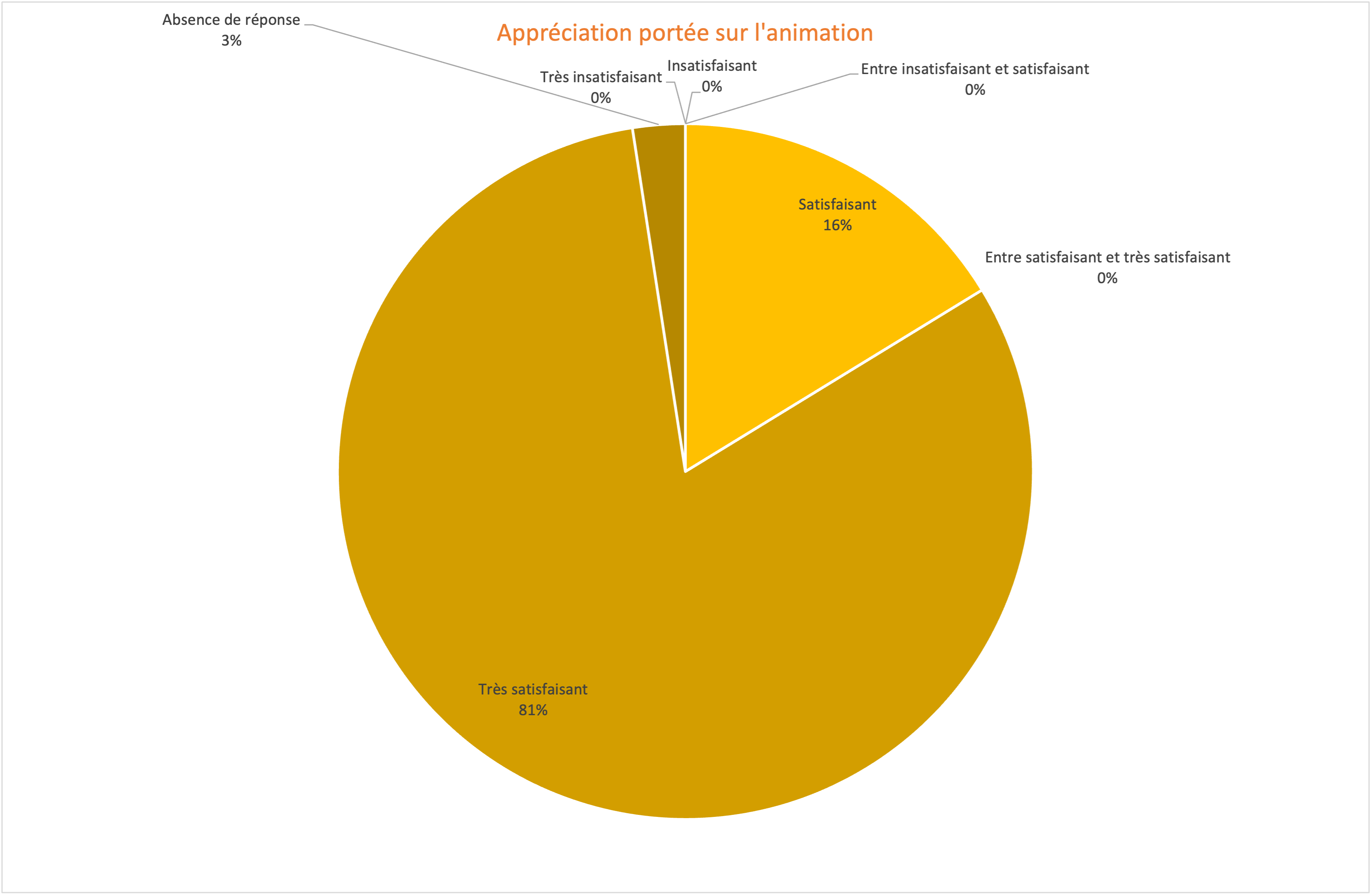 À noter que le point fort de notre organisme de formation reste la qualité de l'animation (nous suivons ce critère depuis l'obtention de notre première certification qualité en 2021 et il est toujours en évolution) : puisqu'en 2025 16% des participants sont satisfaits de notre animation, et 81% des participants sont très satisfaits ! (En 2024 plus de 68% des participants en sont très satisfaits et 28% satisfaits). Nous espérons pouvoir continuer à développer ses compétences au sein de notre équipe de formateurs.